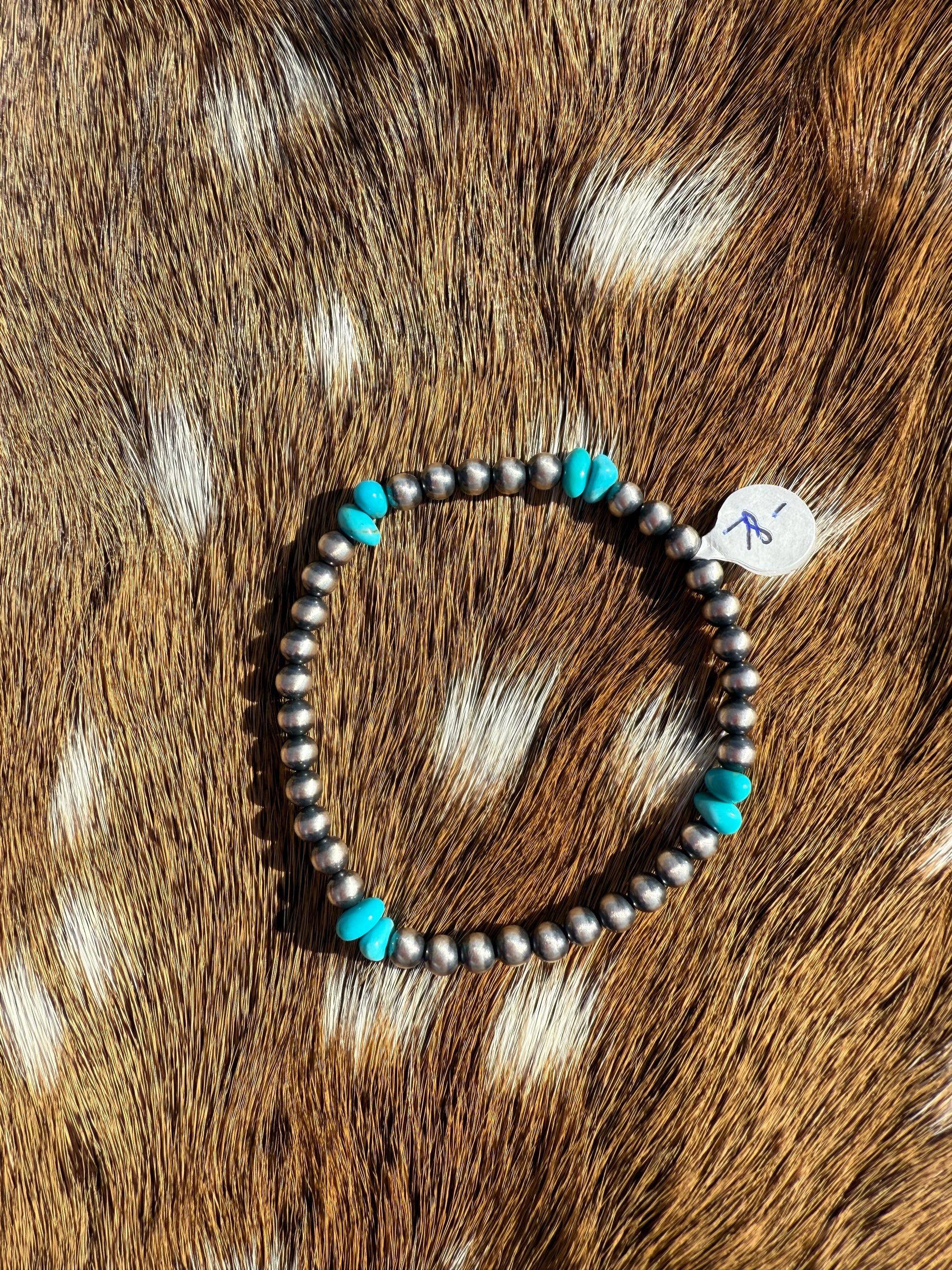 3MM silver beads with a mix of chunky genuine Turquoise!