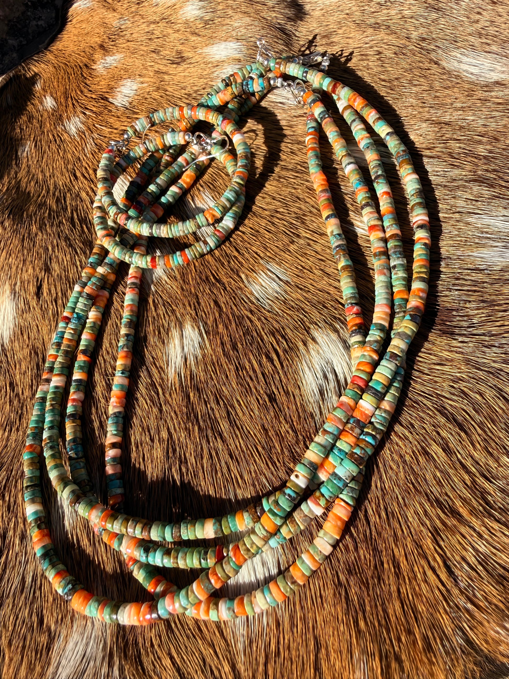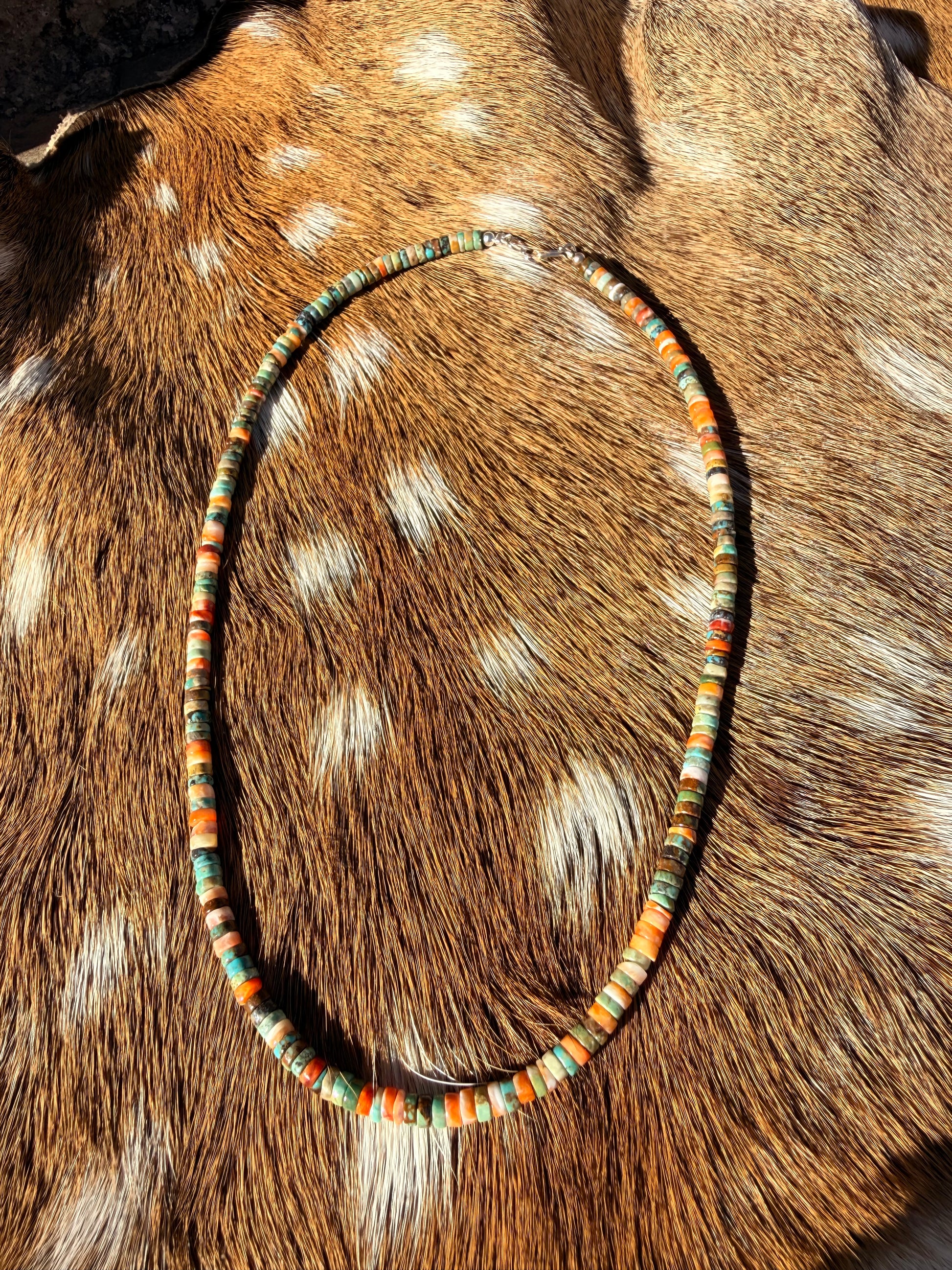 A mix of some oyster and different colored Turqusoie a fun easy wearable necklace