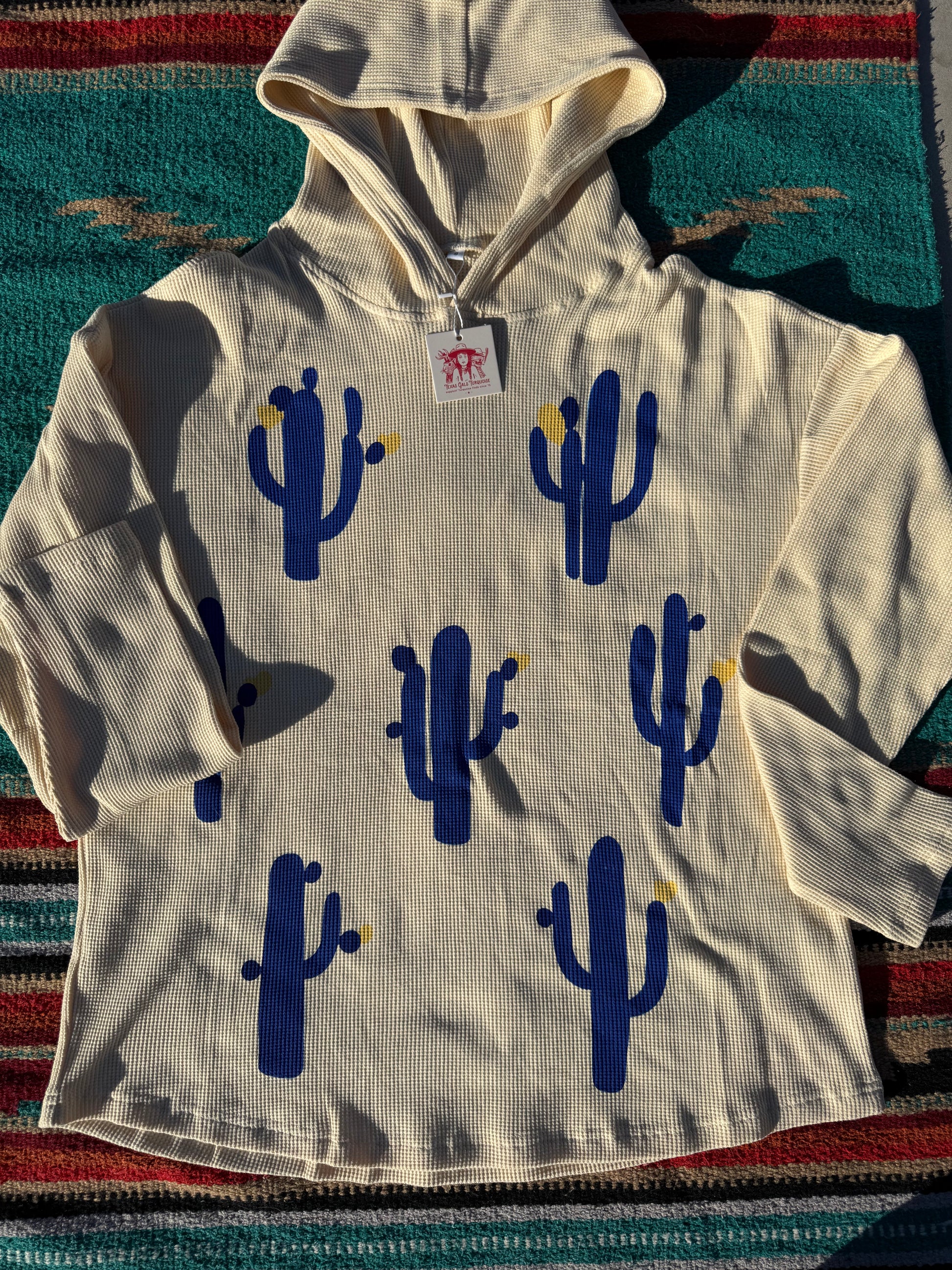 A cotton hoodie design with blue cactus print!
