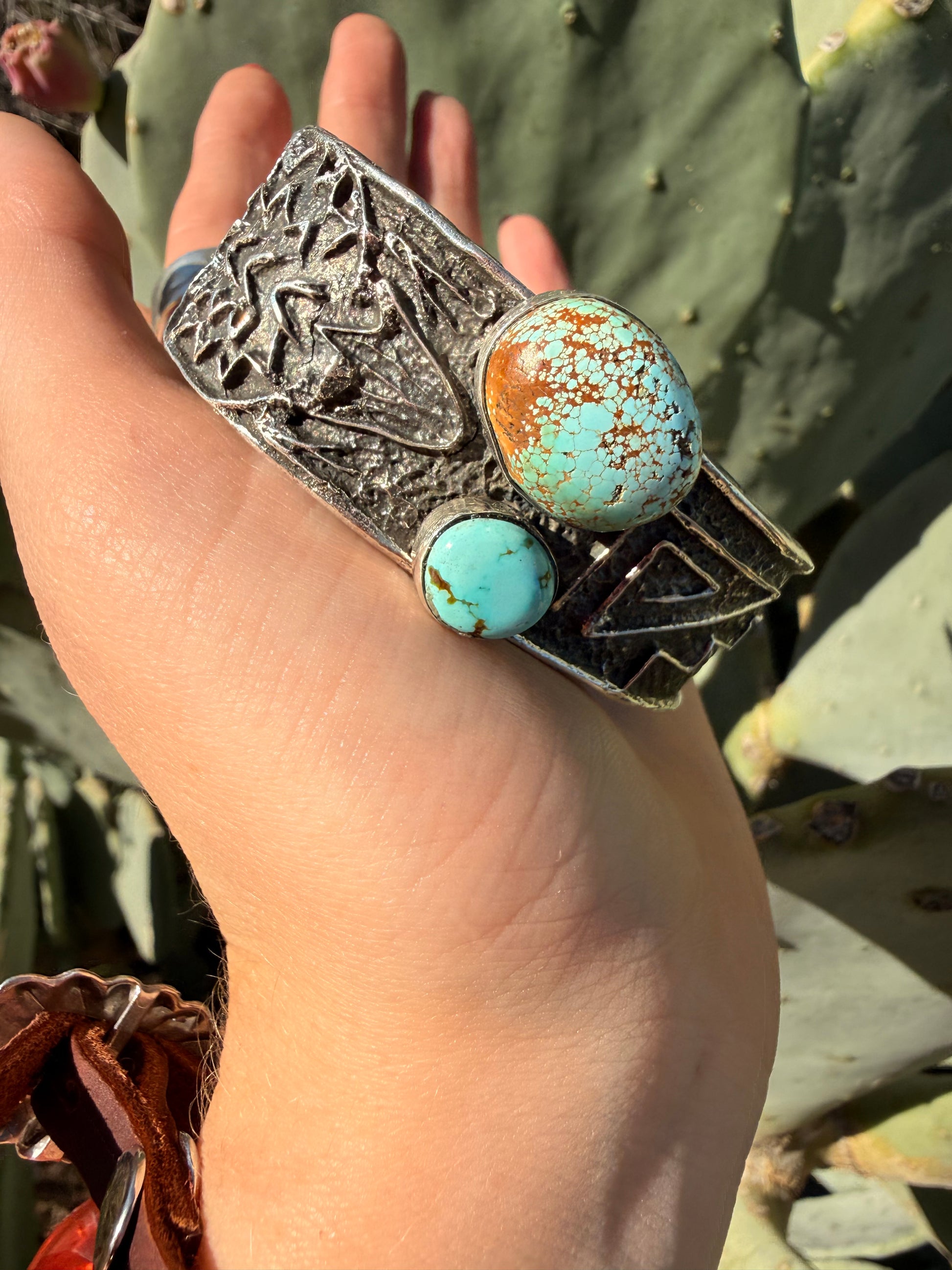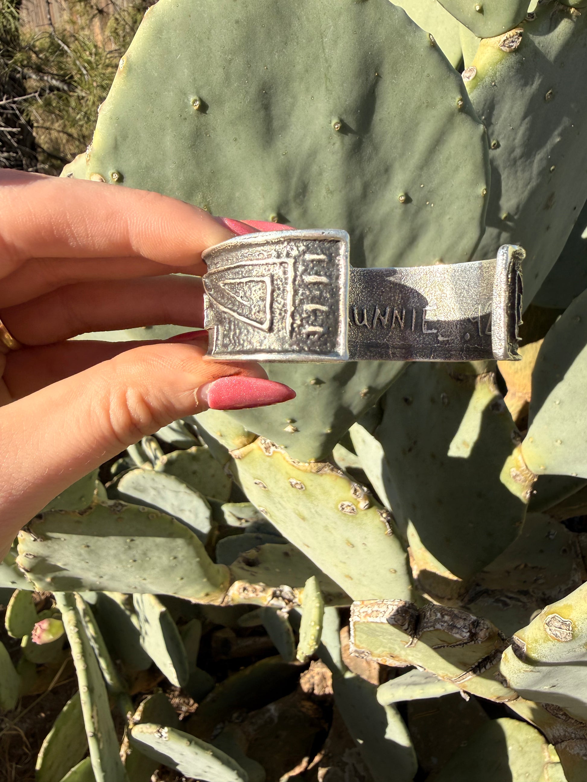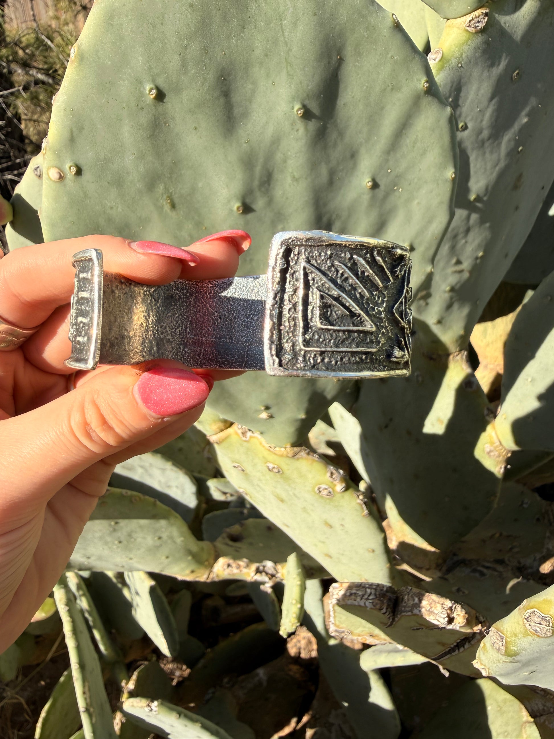 A traditionally made ruffs cast cuff by up and coming artist Eddy Zaunnie, Navajo nations artist.
